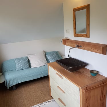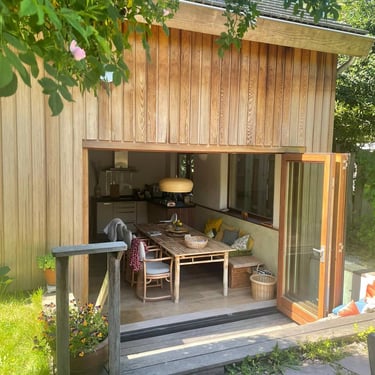 Enkele jaren geleden heb ik in mijn tuin een vakantiehuis gebouwd, helemaal naar eigen ontwerp: gemaakt van ecologische materialen zoals leem, hout, houtvezelisolatie en zeegras, waardoor het een natuurlijke en rustgevende sfeer met zich meebrengt. Het is een rustige stille plek en op vier minuten lopen van de breedste duinen van Nederland, de Schoorlse duinen.